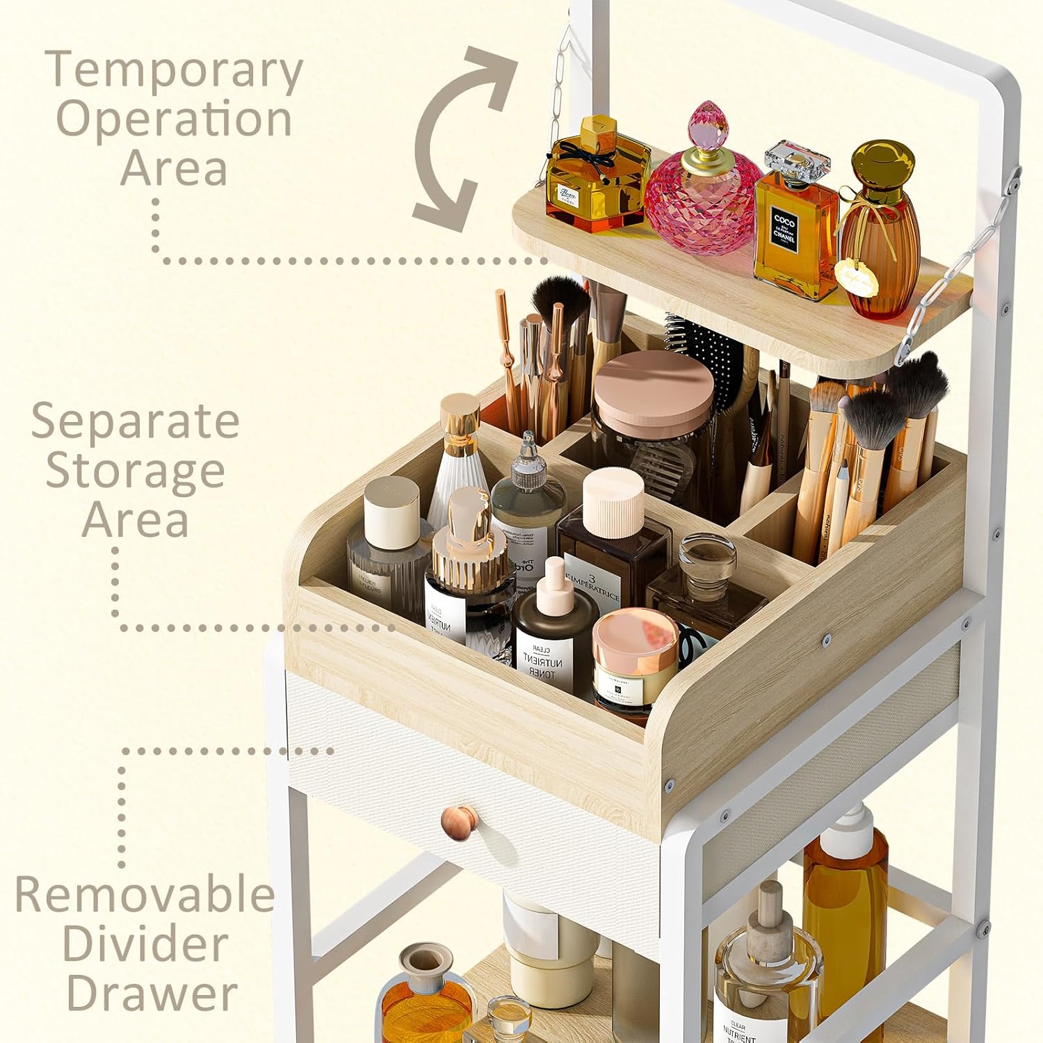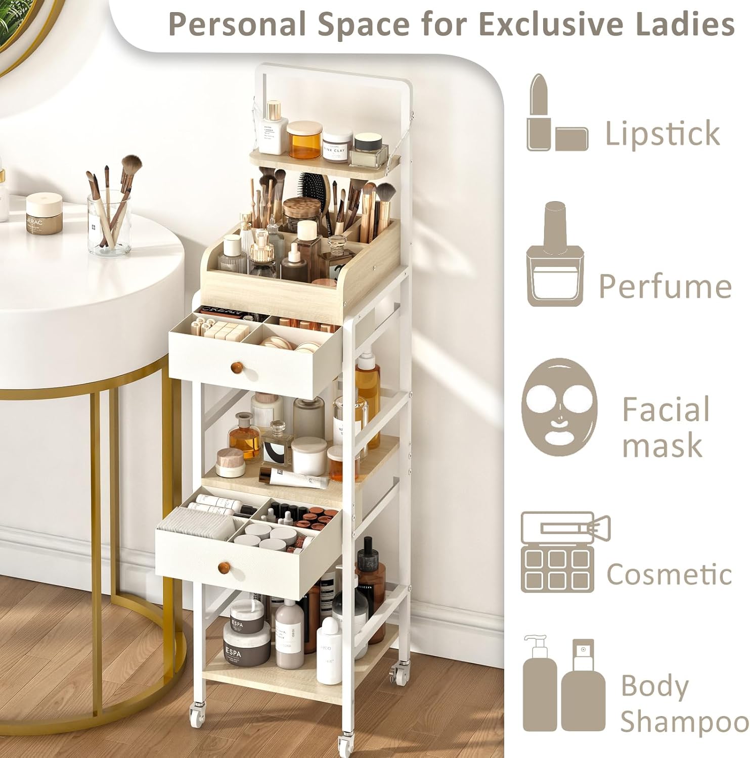 Wisdom Star Makeup Organizer Cart with 2 Drawers, Floor Skincare Organizers, Makeup Storage, Vanity Organizer, Cosmetics Display, Versatile Skin care Perfume Nail Polish Storage Rack for Bathroom