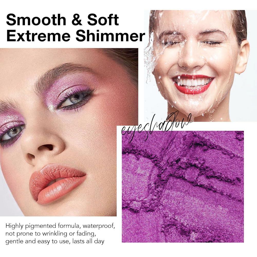 - Rich Color: including 3 finishes: matte, Pearlescent and shimmer. The shadows can be applied wet or dry for many different looks. Reasonable color combination, highly pigmented shadows make the eye looks more vivid and vibrant. You can use it as highlight shade or apply them on top lip, face, legs and body.