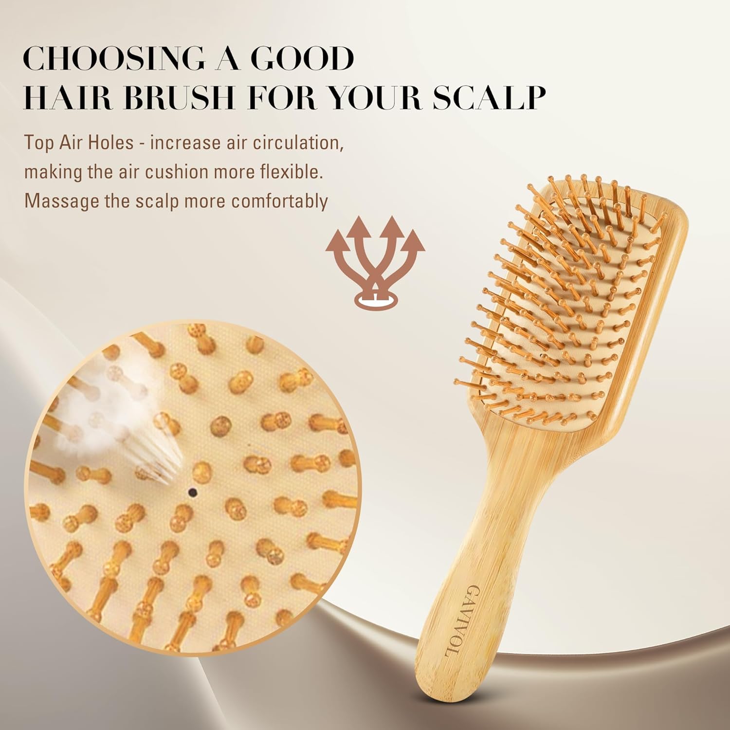 Bamboo Hair Brush, Paddle Detangling Brush for Scalp Massage & Hair Growth, Anti-Frizz & Static-Free, for Thick, Thin, Curly & Dry Hair