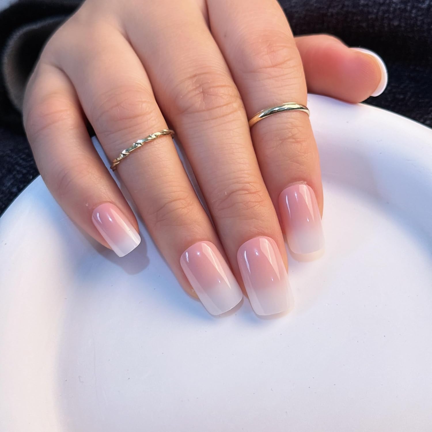 Ombre Press On Nails - 240Pcs Short Square Press on Nails, White Nail Tips Pink White Gradient Soft Gel False Nail Tips Salon Perfect Fake Nails Kit Extensions DIY (Short Square)