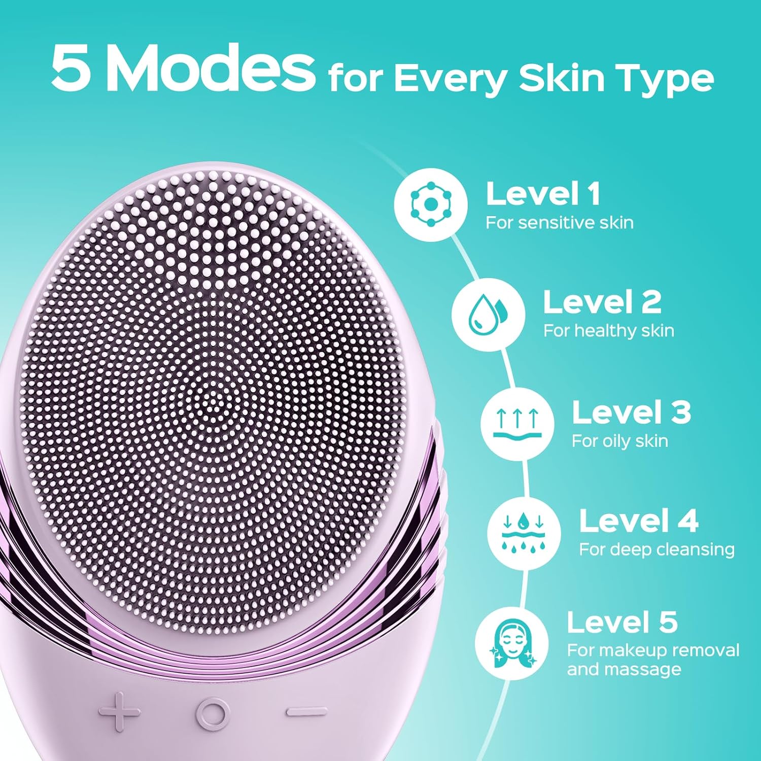 - 5 Tailored Cleansing Modes for Every Skin Type: This facial cleansing brush features 5 adjustable vibration modes to suit a wide range of skin types and needs. Whether you’re targeting clogged pores, beard maintenance, or sensitive skin areas, this Face Scrubber provides customized intensity to deliver effective yet gentle cleansing. Perfect for oily, dry, combination, or normal skin, it brings a spa-like experience to your bathroom and supports daily skincare for high school boys, college students, and busy adults managing skin concerns with ease.