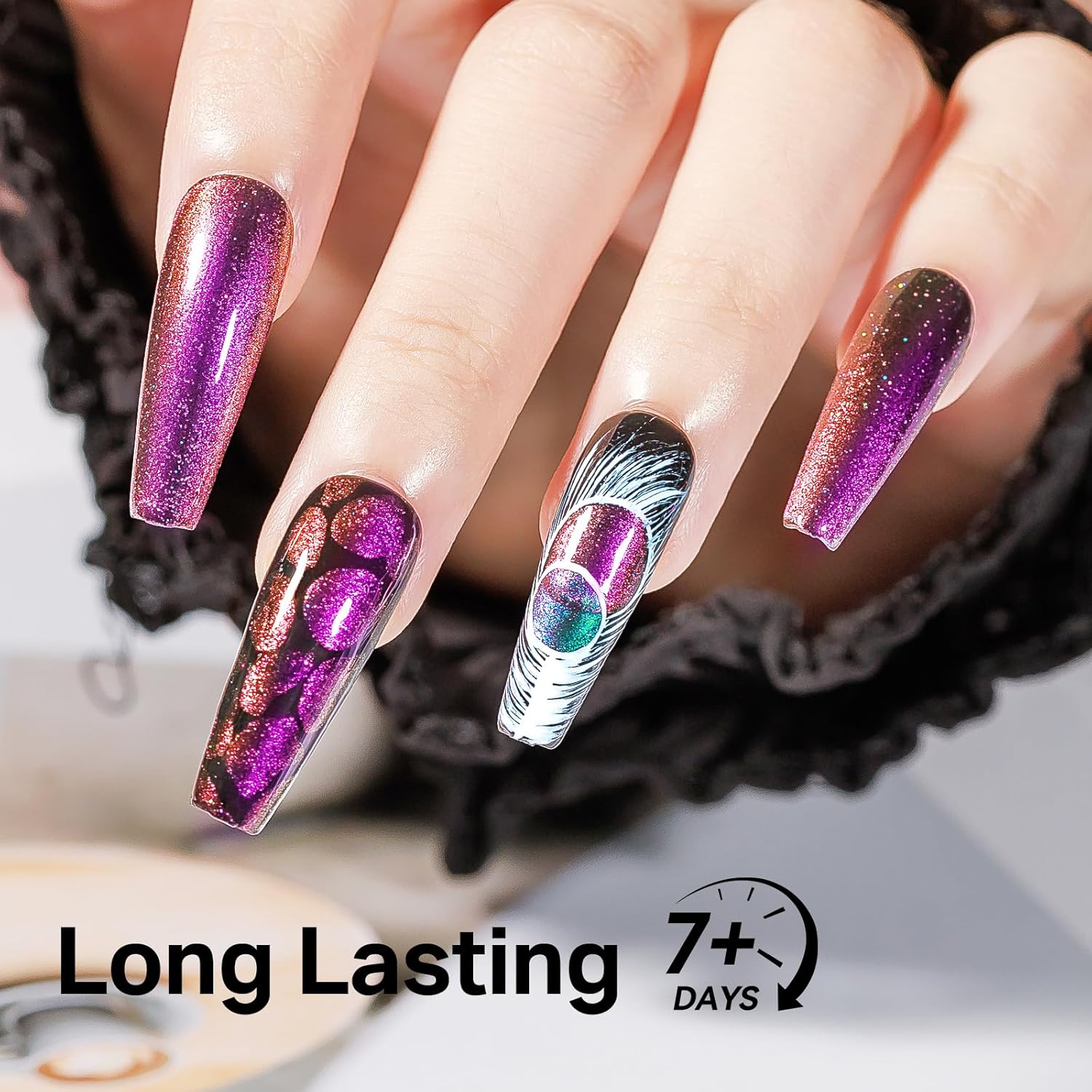 - 9D Cat Eye Nail Polish: 1*15ml(0.5fl.oz) larger bottle magnetic nail polish. Suggest to apply black nail polish as base color, that will get obvious galaxy effect. Perfect for daily wear, and any occasion where you want to add magic color to your look. Highly versatile and easy to apply.