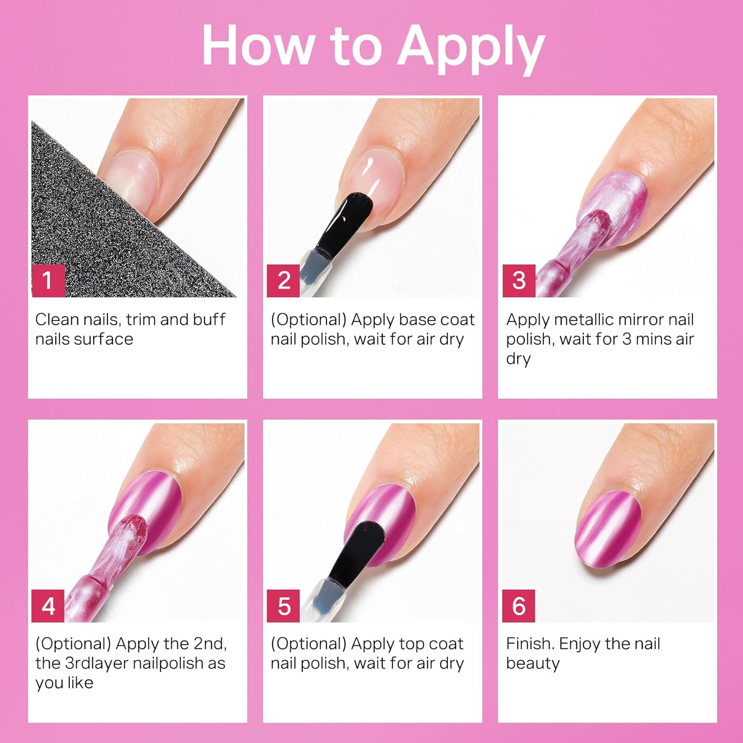 MIZHSE Rose Red Mirror Nail Polish, Quick Dry Metallic Nail Polish, Air Dry Fast Chrome Nail Lacquer Bright Color Oil-based Nail Art Manicure DIY Home