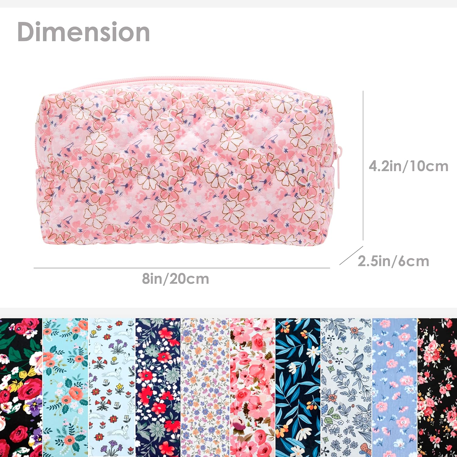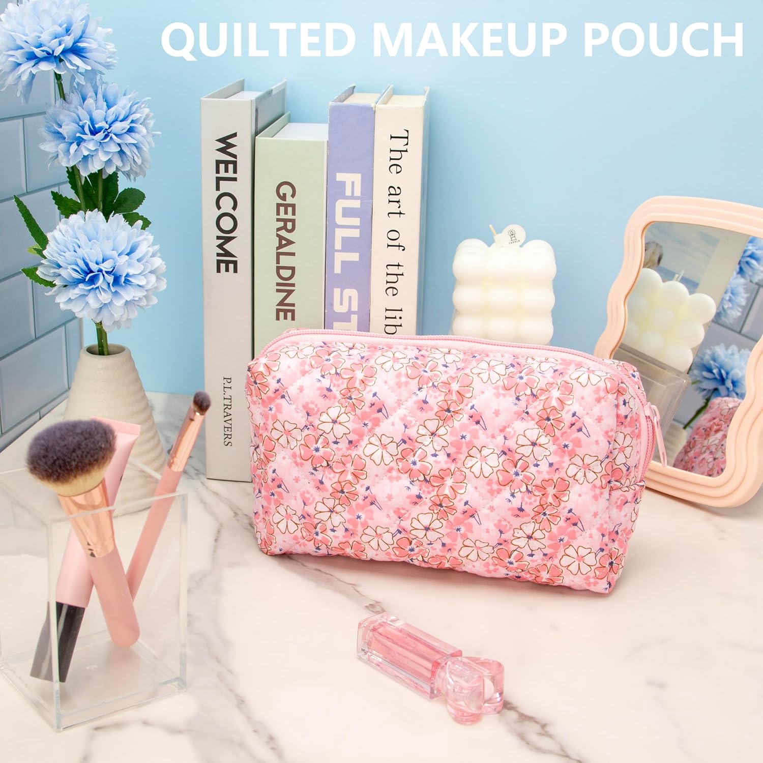 PAZIMIIK Vintage Quilted Makeup Bag Cosmetic Pouch for Brushes Pencils and Travel Make Up Accessories for Women and Girls Floral Pink