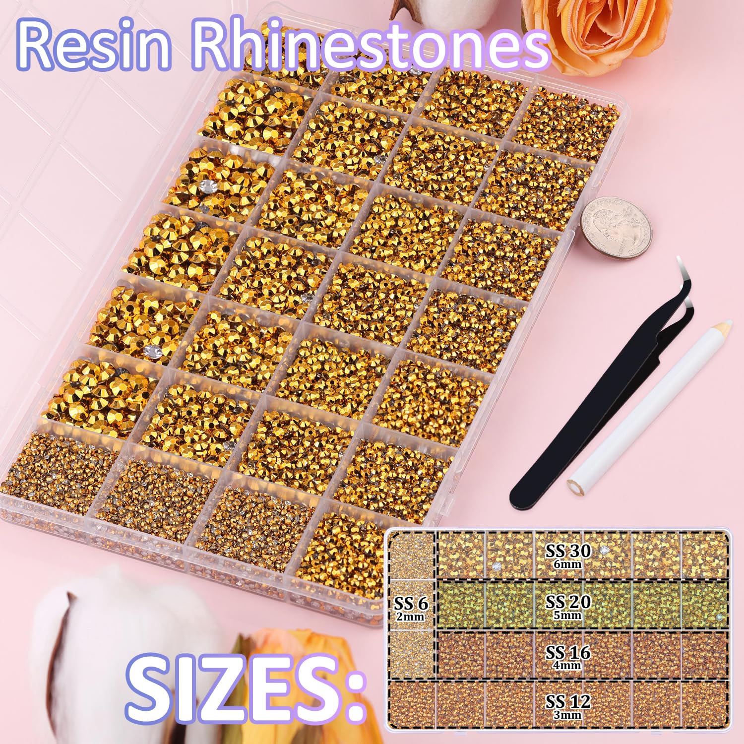 30000Pcs Resin Rhinestones for Bedazzling with Tweezers, Mine Gold Rhinestones for Crafting with B7000 Jewelry Glue for DIY Crafts Clothing Tumblers Shoes Fabric Nail Art