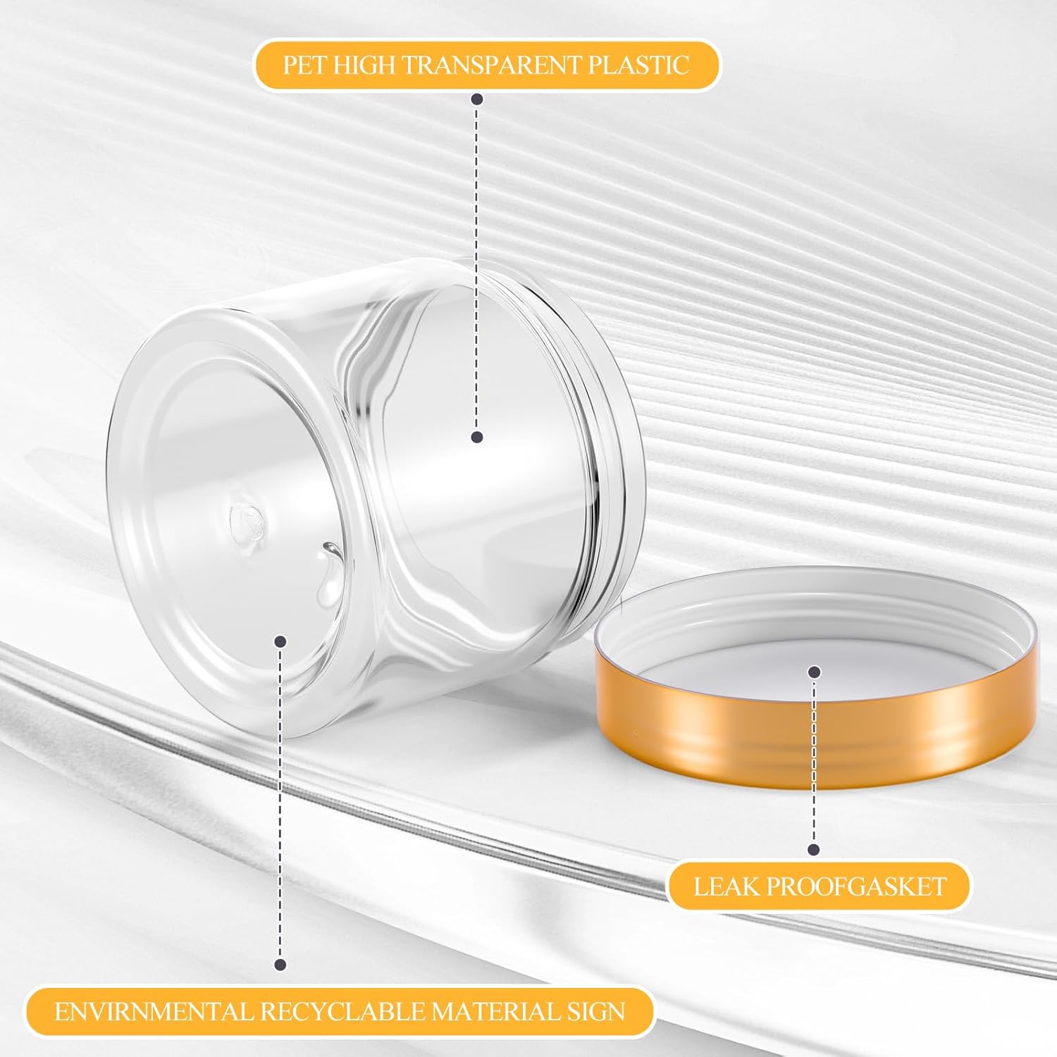SATINIOR 36 Pieces 10 oz Plastic Jars with Lids Wide Mouth Airtight Reusable Container Acrylic Cosmetic Small Jars for Lotions Ointments Travel Toiletries Creams Make up Storage(Gold)