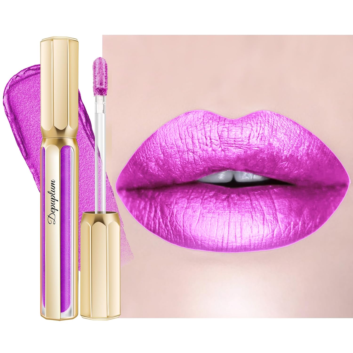 - METAL LIQUID LIPSTICK WITH DUAL EFFECTS: Depuplum metallic shine lipstick delivers a lightweight and pigmented finish, creates two effects: a thin layer for shimmer payoff and a thick layer for bold metallic style