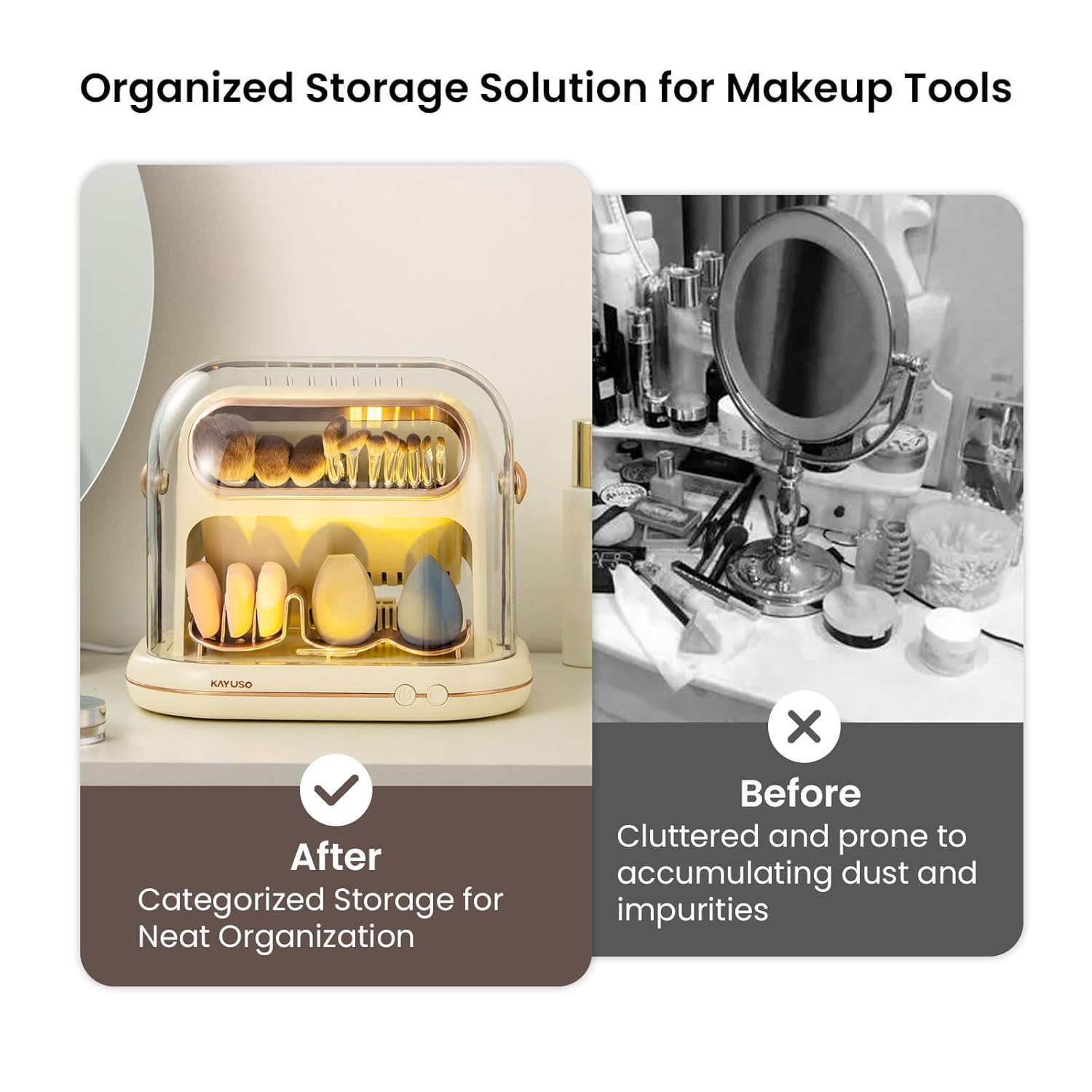 KAYUSO Electric Makeup Brush Dryer Machine, 3 in 1 Automatic Makeup Brush Dryer and Storage with Cover, Timed Cleaning Tool for Most Size Brushes and Sponges