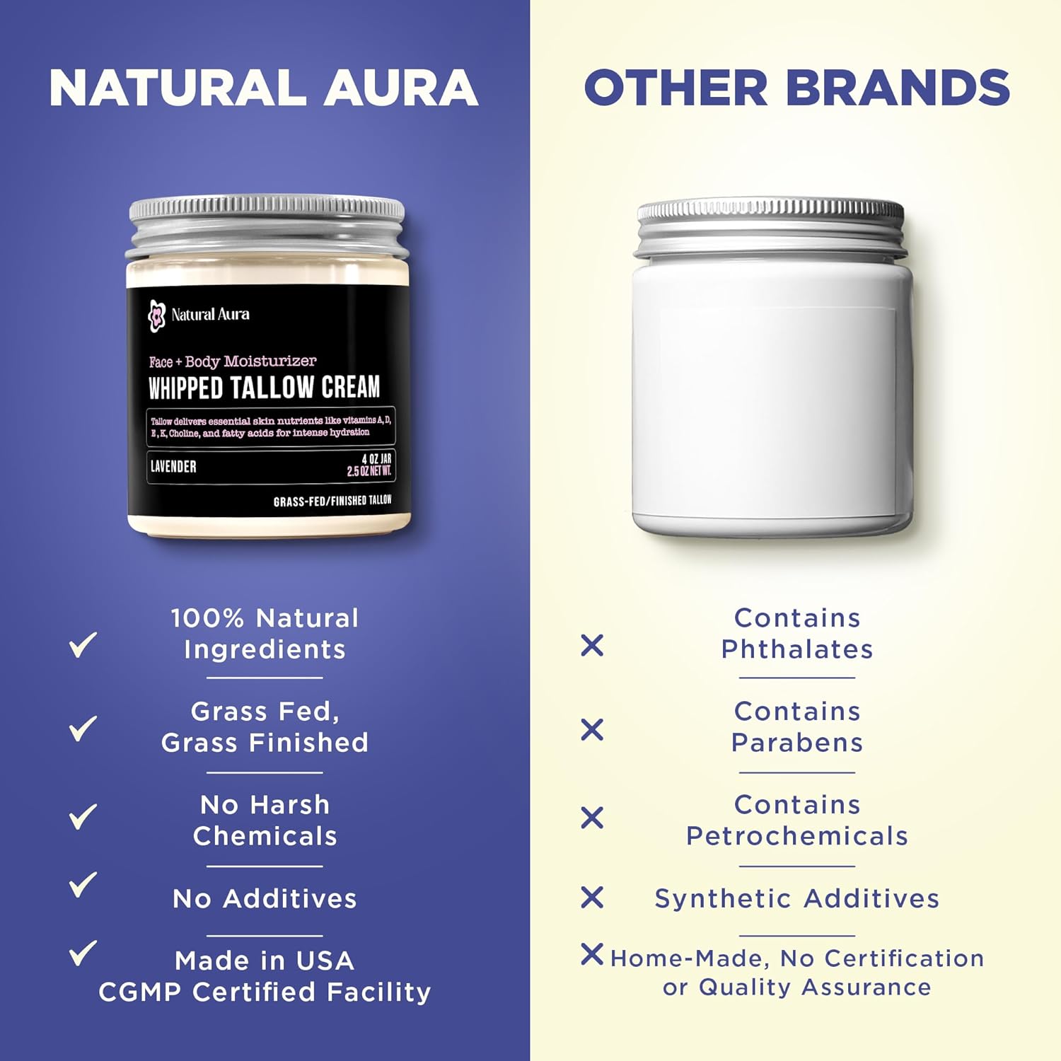 - WHIPPED TEXTURE: Light, airy, and fast-absorbing, this whipped tallow cream texture glides on effortlessly and melts into skin, leaving behind a soft, velvety feel you’ll fall in love with from first use.