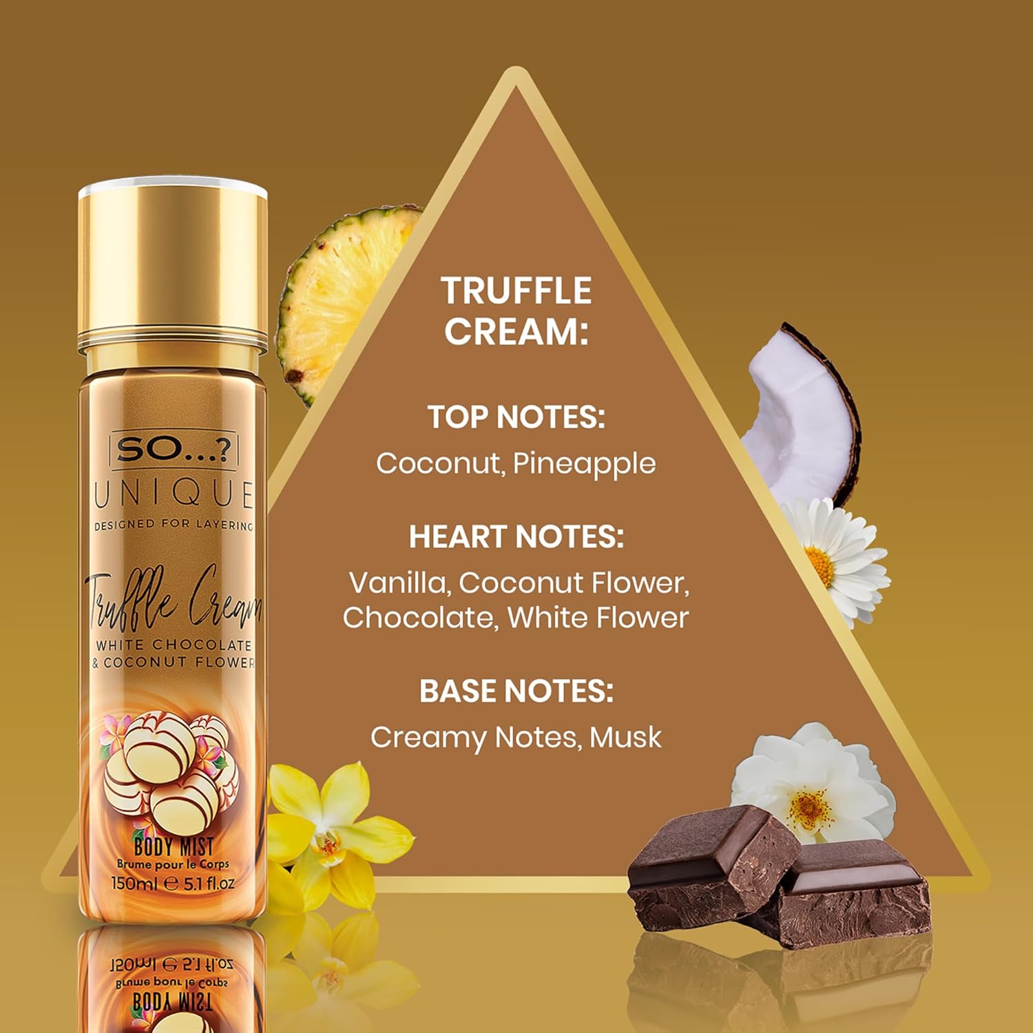 So...? Unique Body Mist - Truffle Cream for Women - 5.1 oz Body Mist - Pack of 3