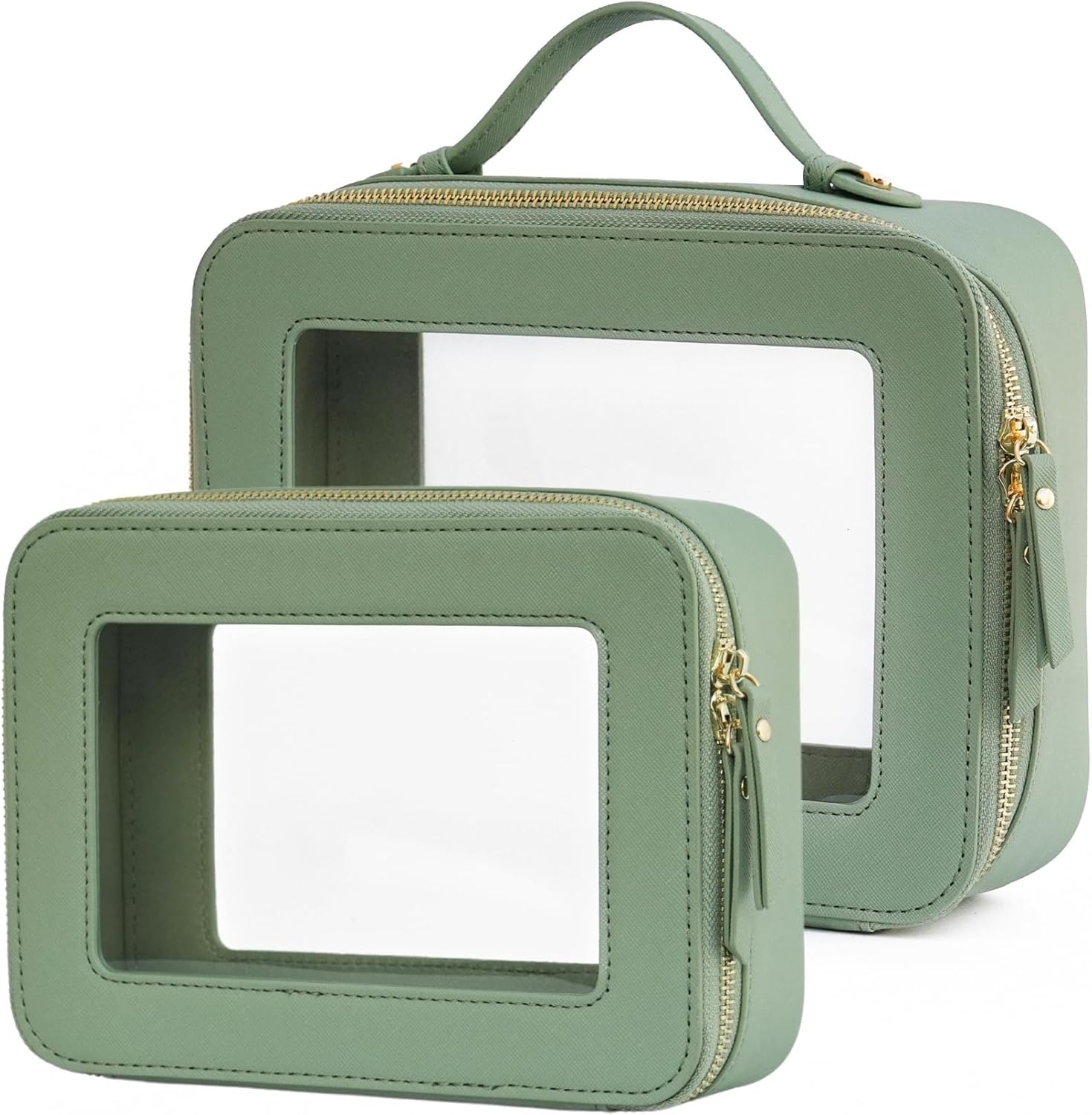 • [Premium Material and Durability] – The clear cosmetic case, both the exterior and interior, is crafted from high-grade saffiano faux leather, which is highly scratch resistant, durable and exceptionally easy to keep clean. It features a smooth zipper for secure closure, and elegant light gold metal hardware accents, adding a luxurious and sophisticated touch to the bag's overall design.