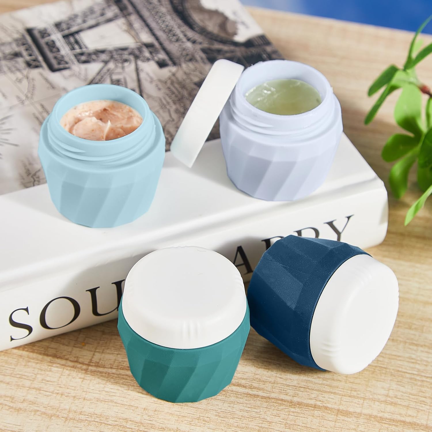 - 【MULTI-PURPOSE USE】Travel Containers for Toiletries have multiple uses. Travel silicone cream jars with lids can store creams, lotions, make-up, scrubs, ointments, accessories, beads, small jewelry and more. Works great for gel-type items