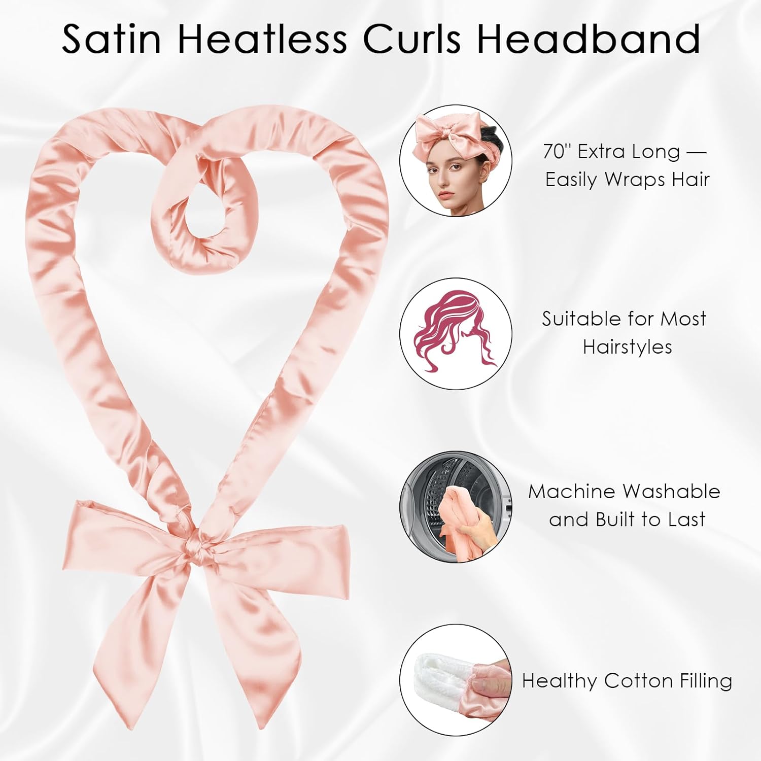 - Heatless Curls: This 70" long overnight curls headband features a non-heating design, avoiding heat damage to the hair, making it perfect for use while sleeping. Enjoy a comfortable sleep and wake up to beautiful, healthy curls and heatless waves
