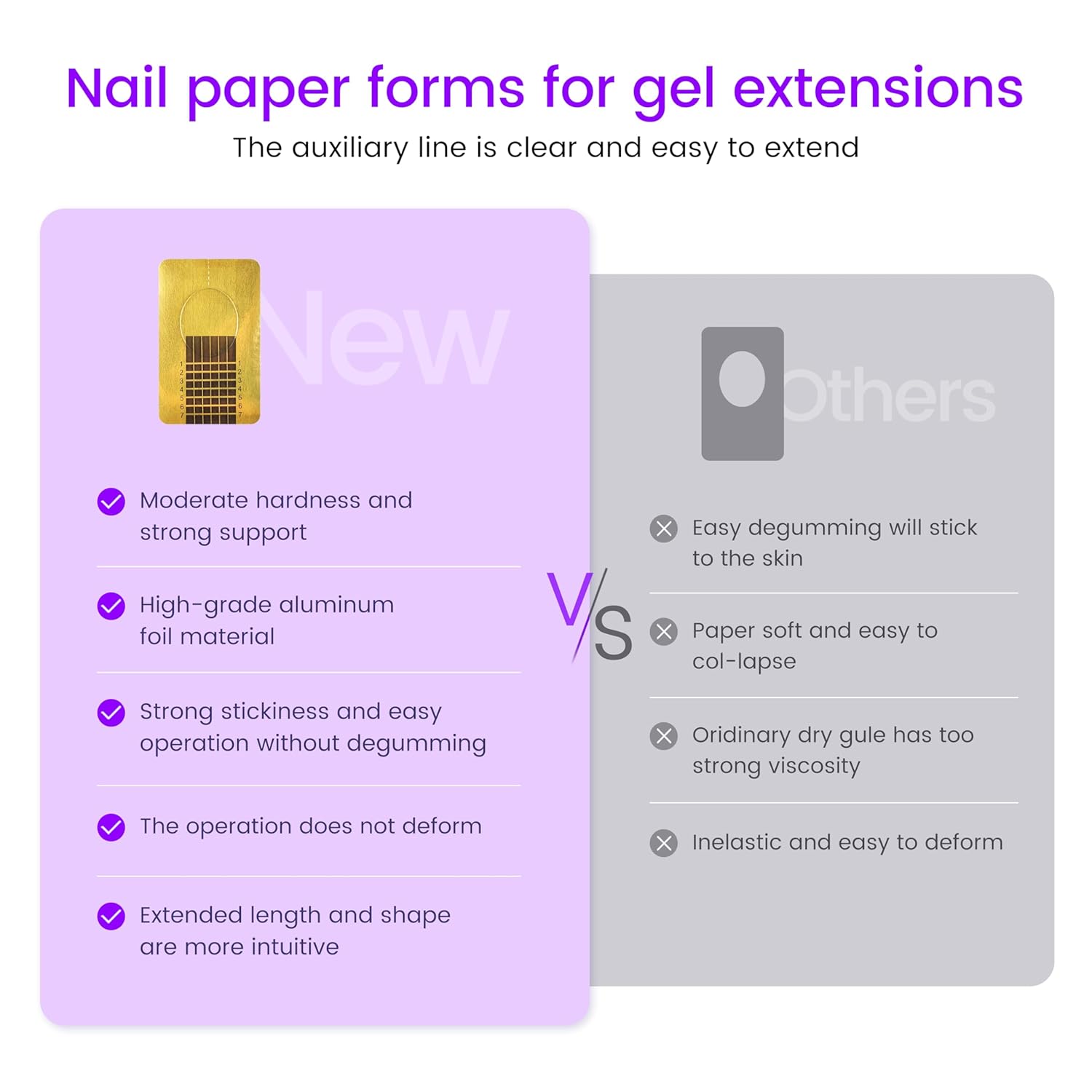 - Highly Adhesive:nail extension forms have self-adhesive properties and can firmly adhere to fingers, making them suitable for fixing nails. Don't worry about instability when applying extension glue. It is an essential tool for nail 1.