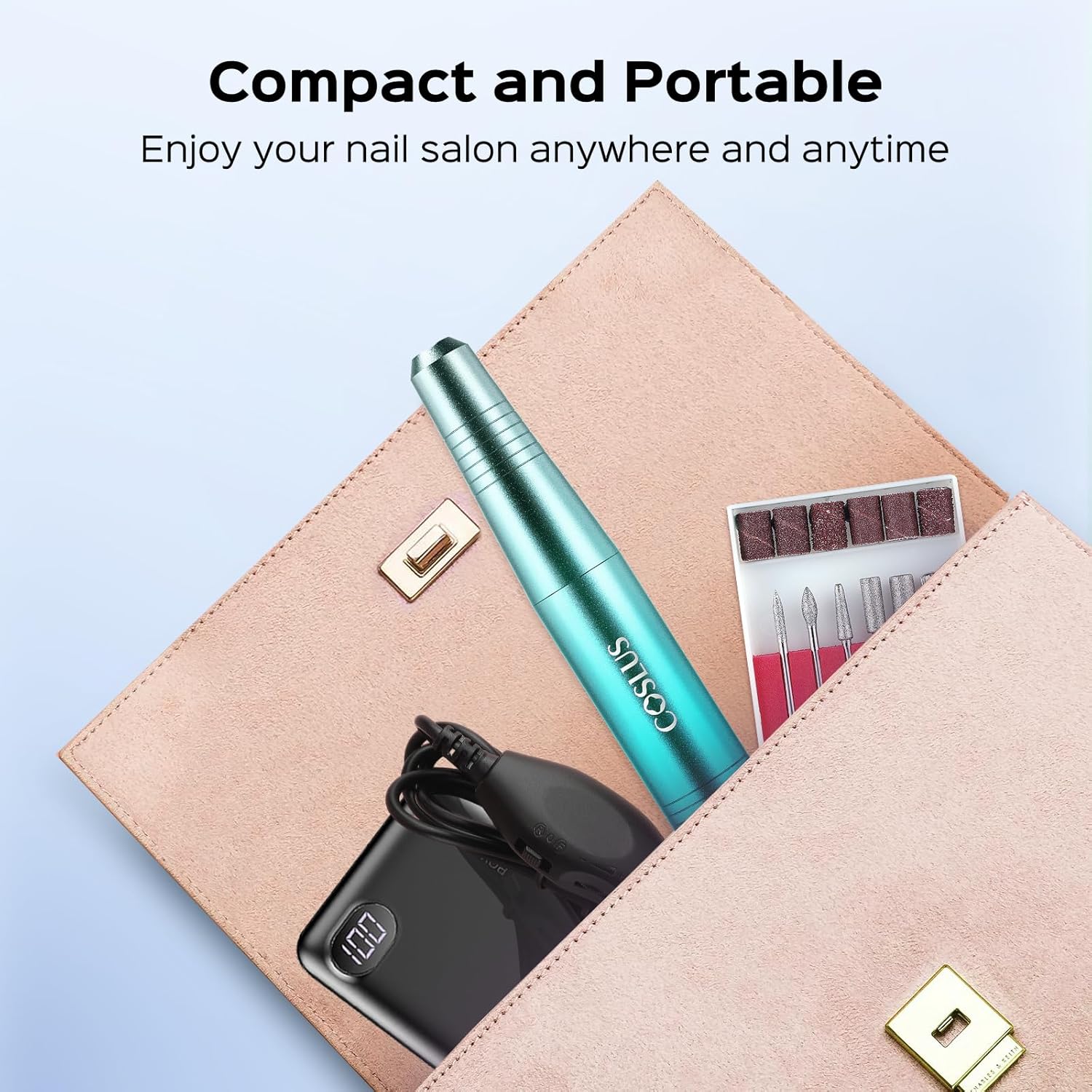 COSLUS Electric Nail Drill File Professional: for Acrylic Gel Dip Powder Nails Portable Nail Machine Kit Manicure Pedicure Tools Polishing Set with Nail Drill Bits Sanding Bands Blue