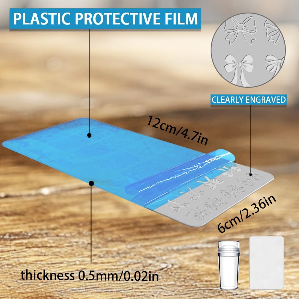 - Package Information: A total of 3 templates, 1 nail stamp and scraper, bows, hearts, ties, envelopes, cake, cherry patterns, randomly collocation, leading the nail fashion