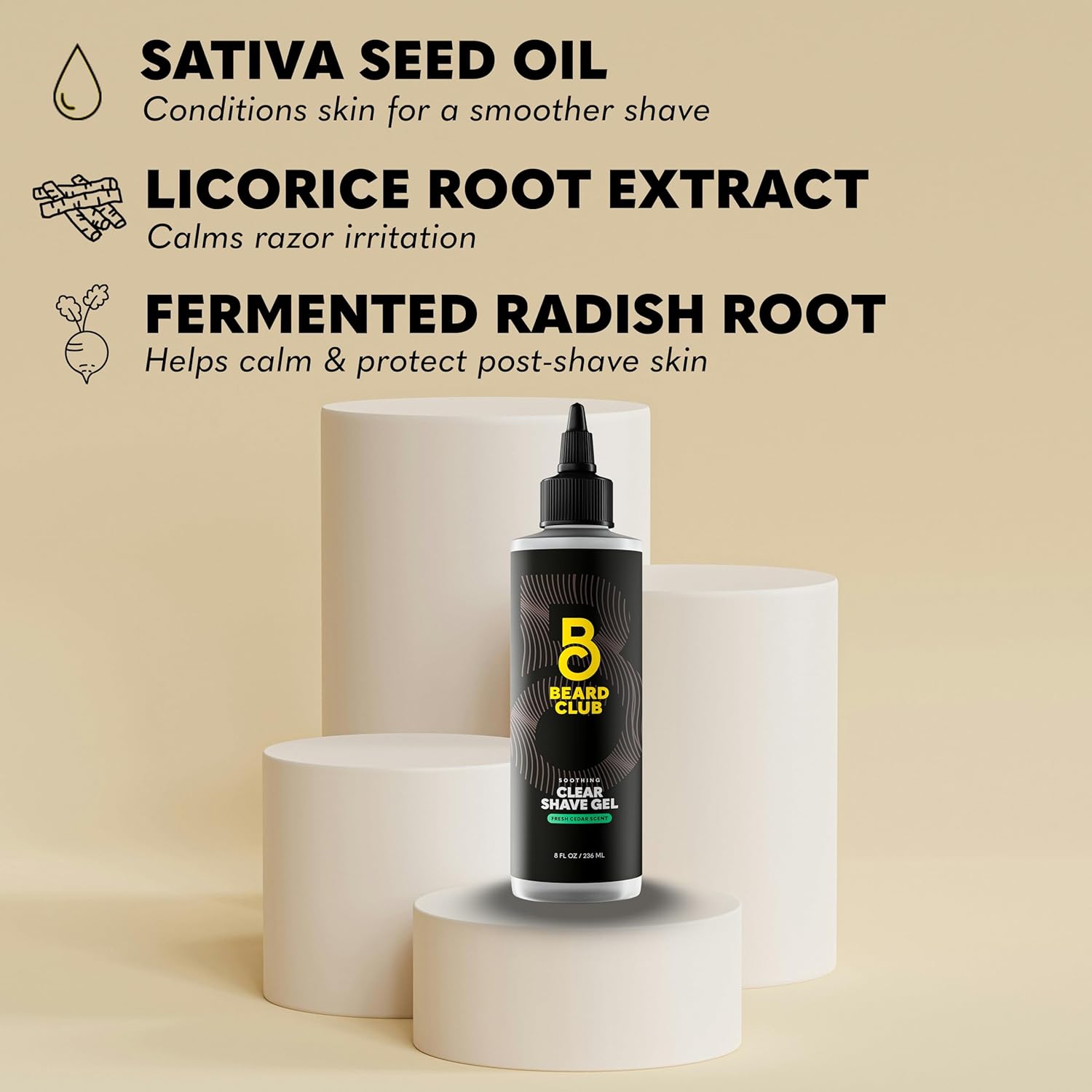 Beard Club Premium Shaving Gel for Men – Hydrating Mens Shave Cream for Sensitive Skin – Cedar Scent Precise Line Ups & Smooth Shaving – Clear Shave Gel for Men – Cooling Sensation – Sativa Seed 8oz