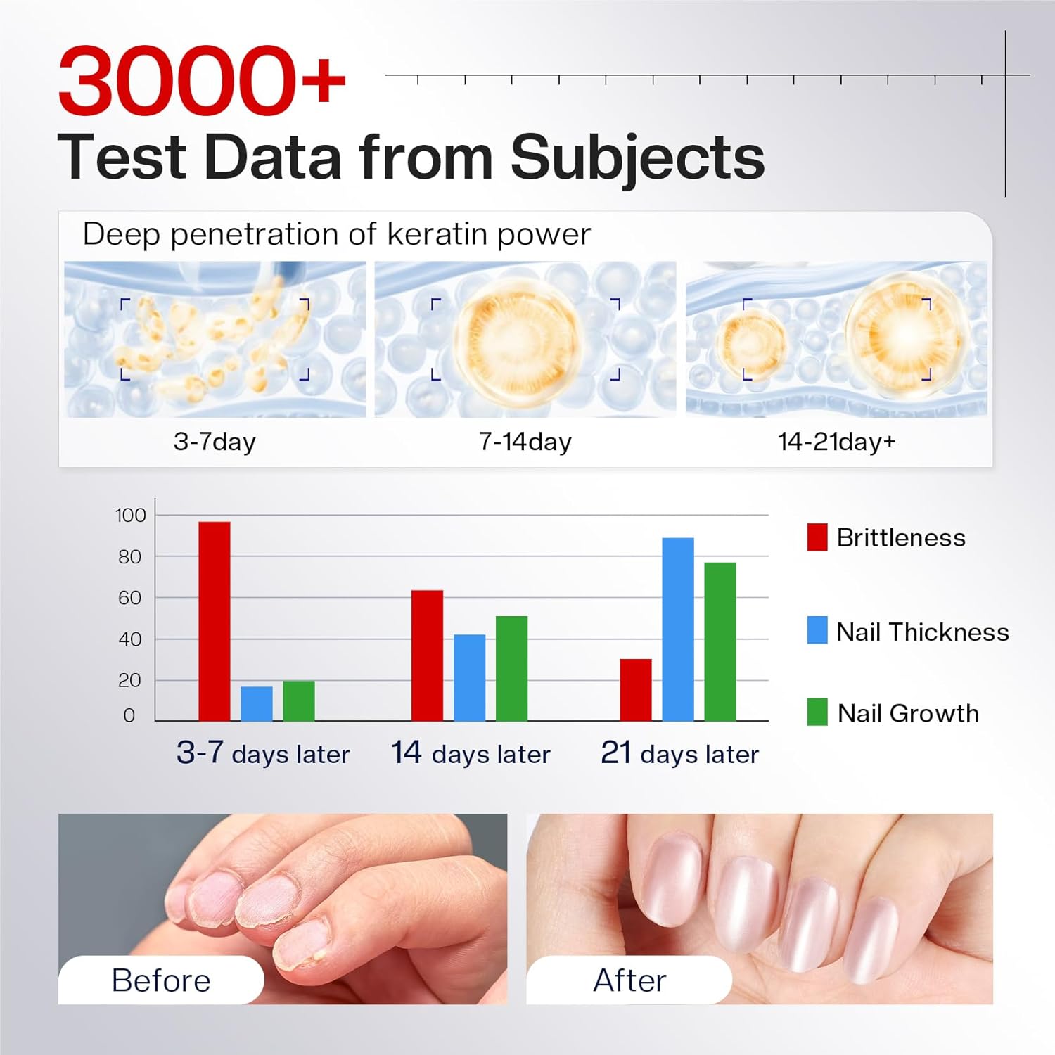 - Nail Hardener: Tested 10w+ samples, effectively proved to nail strengthen for damaged nails, nail repair, add βcalciumβ to improve work, housework, remove nail art caused by thin, brittle, cracked nails, reduce discoloration, make nails smooth, and back to nails health.