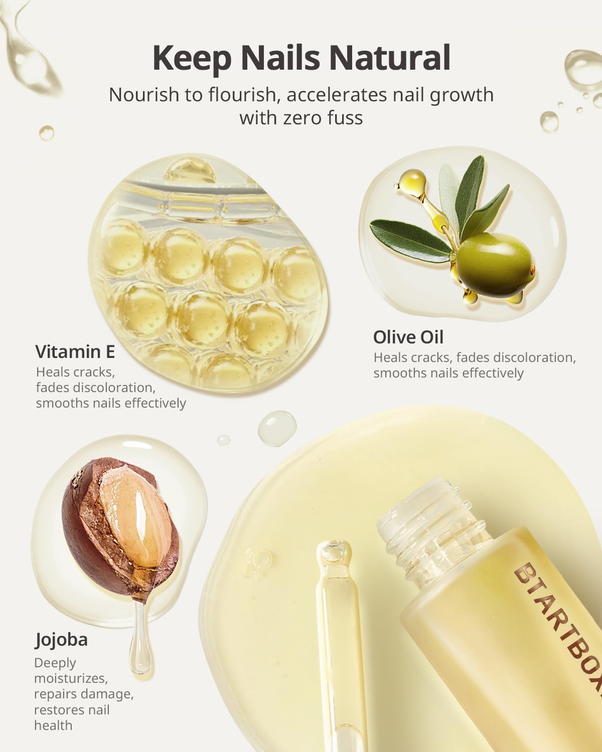 - FROM BRITTLE TO RESILIENT: Natural organic formula including olive fruit oil, jojoba oil repairs damaged keratin and accelerates nail growth, help the damaged nail beds recover from brittle to resilient.