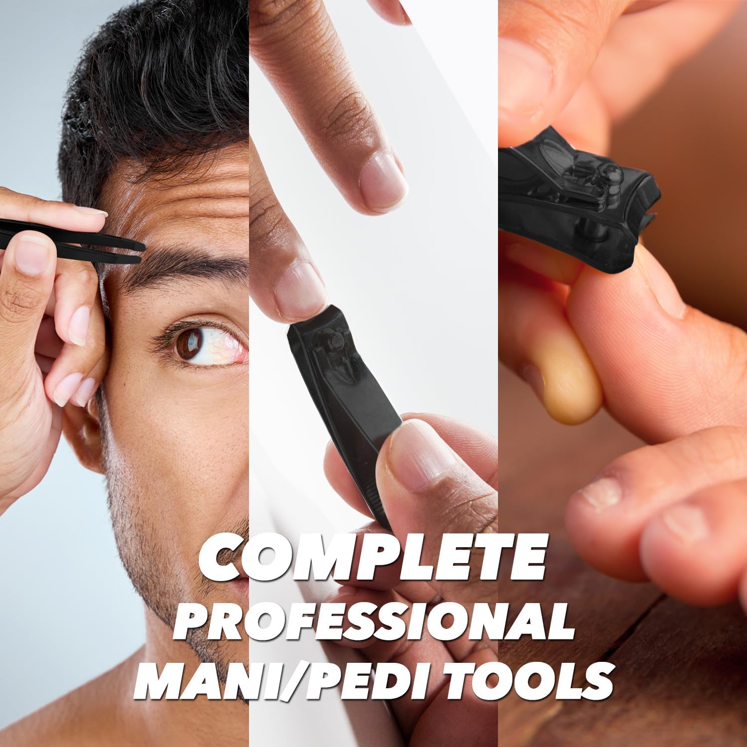 - Complete Mani Pedi Kit for Women and Men: Achieve salon-quality nails at home with our fingernail & toenail clippers, nail file buffer, nail tweezers, and nail cuticle pusher. 16 count with 1 Leatherette Carrying Case