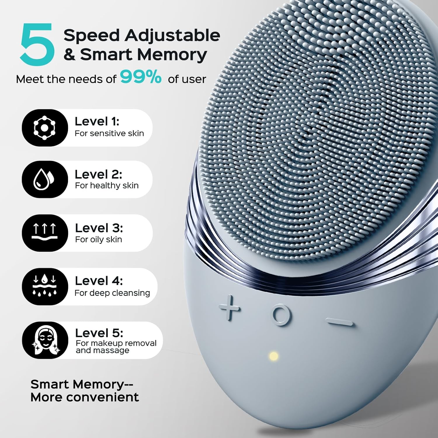 - 5 Personalized Cleansing Settings for Every Skin Type: This facial brush is equipped with 5 vibration modes to meet different skin demands. Whether tackling stubborn pores, maintaining facial hair, or caring for sensitive skin, it ensures the right level of intensity for both comfort and effectiveness. Suitable for oily, dry, combination, and normal skin, it creates a spa-like ritual at home and is trusted by high school boys, college students, and busy adults balancing daily skin concerns