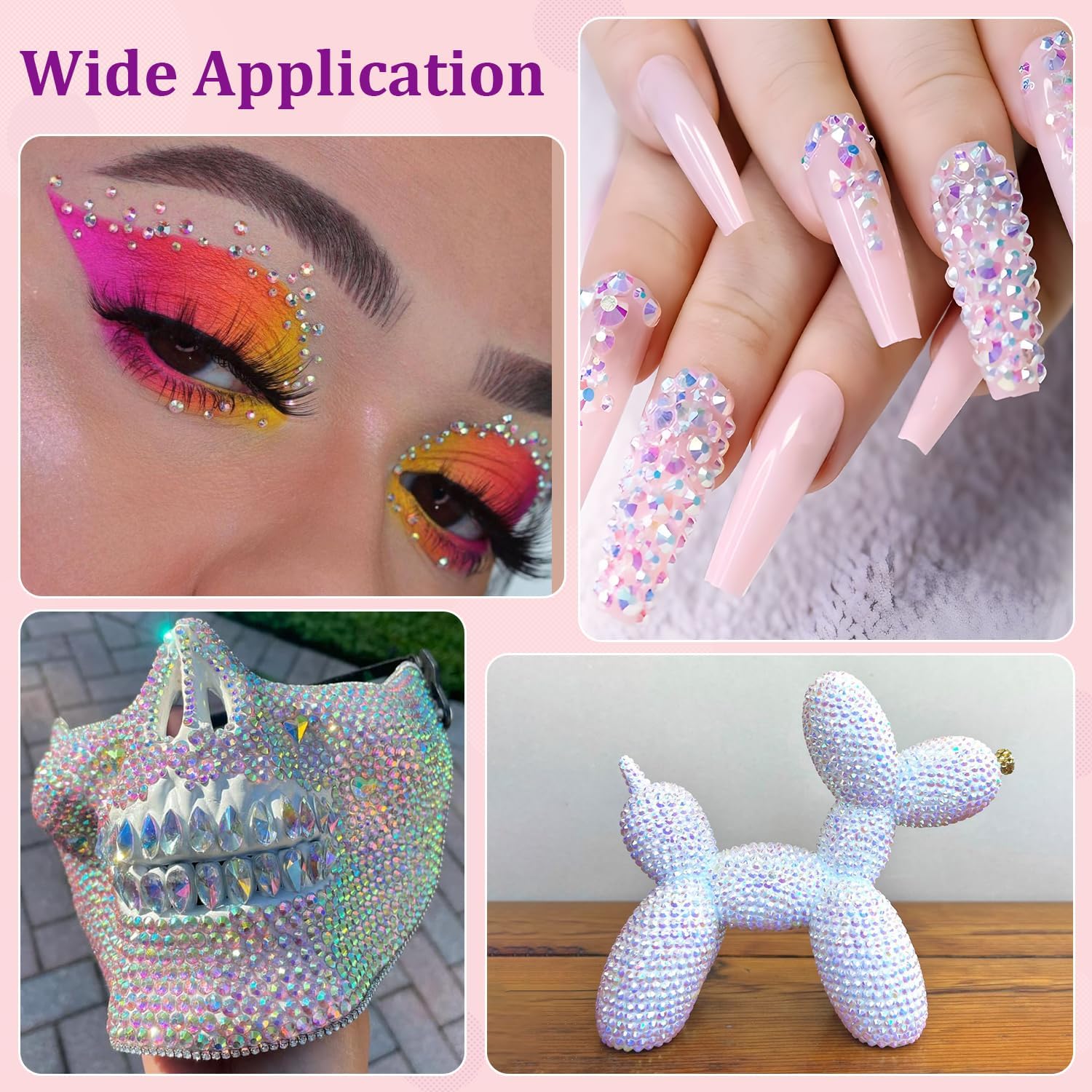 - WIDE APPLICATION -- These sparkling iridescent resin rhinestones are perfect for creating dazzling looks. Use them for bedazzling crafts like shoes, tumblers, mugs, bottles, phonecases, bags, glasses, hats, masks, clothing, clothes or nail art and more. Add sparkle to anything with these versatile resin gems