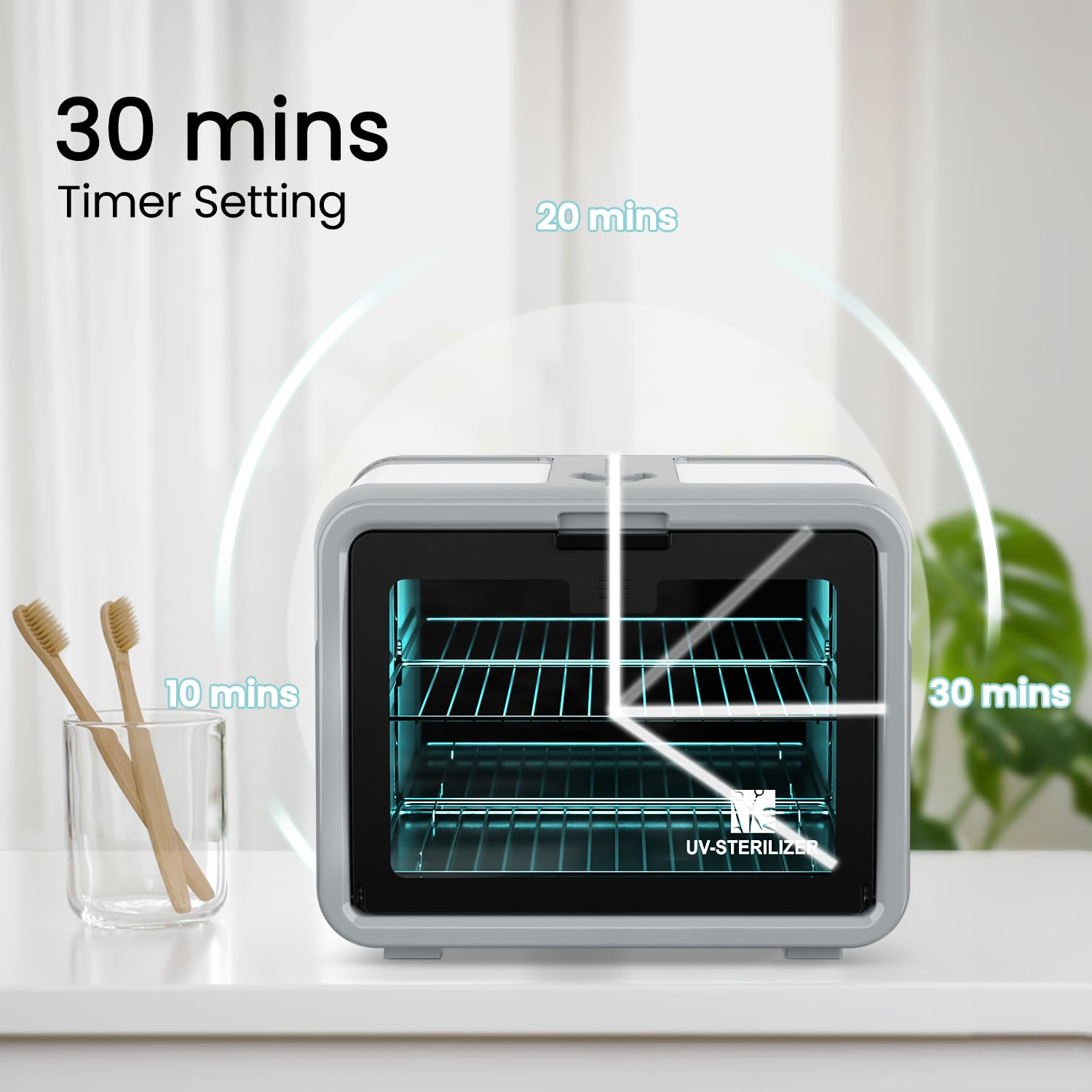 - 360° Disinfection: Featured a durable and replaceable UV bulb, the sanitizer cabinet disinfects most items efficiently and thoroughly in just 3 minutes