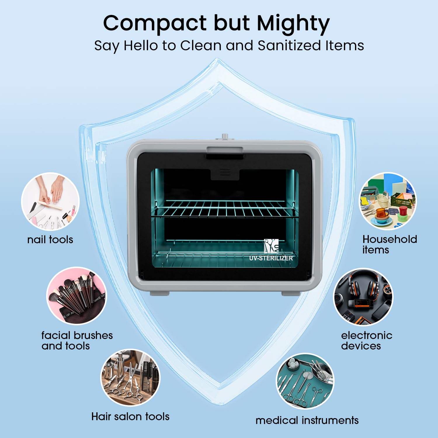 UV Sanitizer Cabinet Professional Disinfection Box 8L Capacity for Salon Tools, Manicure Set, Smartphones and Home Use (Gray)