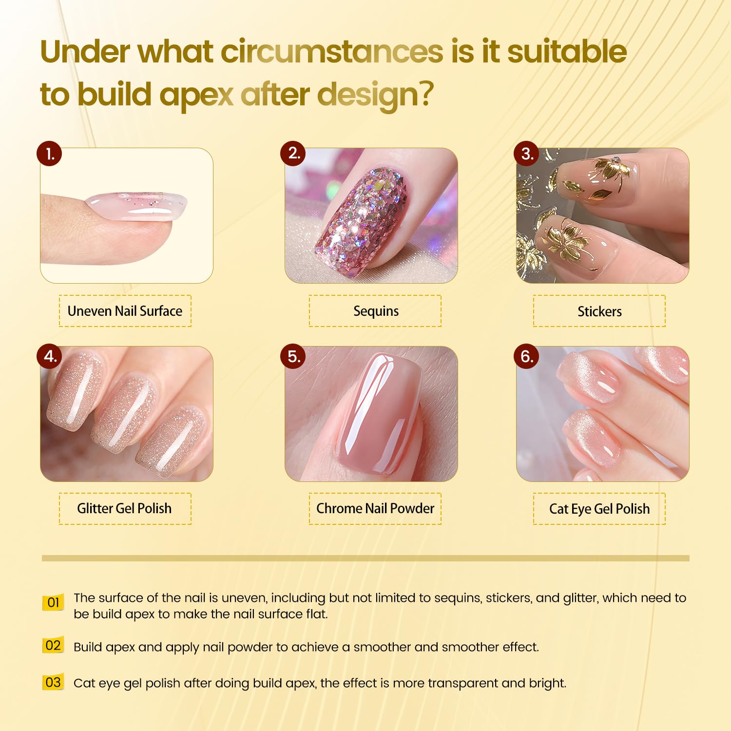 - Strong & Smooth for Structure:Ideal for adding a smooth and even thickness. Maintains clarity even when applied thick, making it perfect for sculpted nail looks.