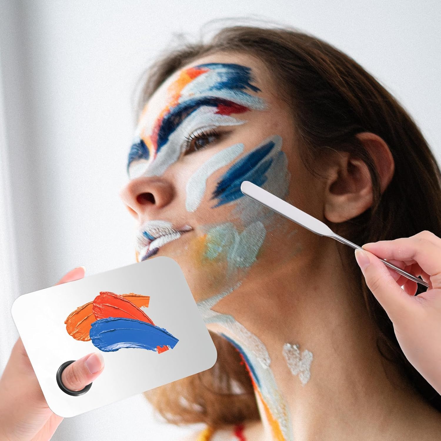 - 【Wide application】Stainless steel makeup mixing tray is suitable for mixing liquid foundation, lipstick, eye shadow, and other cosmetics, as well as nail gel, art pigment toning. This makeup palette is perfect for professional makeup artists and non-professional makeup lovers alike, making the makeup spatula the perfect gift for them.