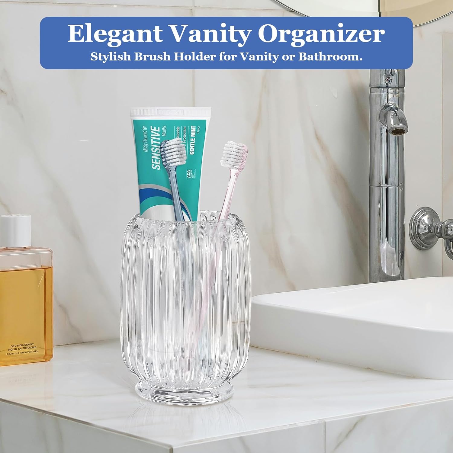 Makeup Brush Holder, Thick Glass Makeup Brush Organizer Cup, 4.8" Tall for Vanity Hair Brush Holder Brushes Storage, Makeup Brush Holder Organizer organizador de brochas de maquillaje Crystal Clear