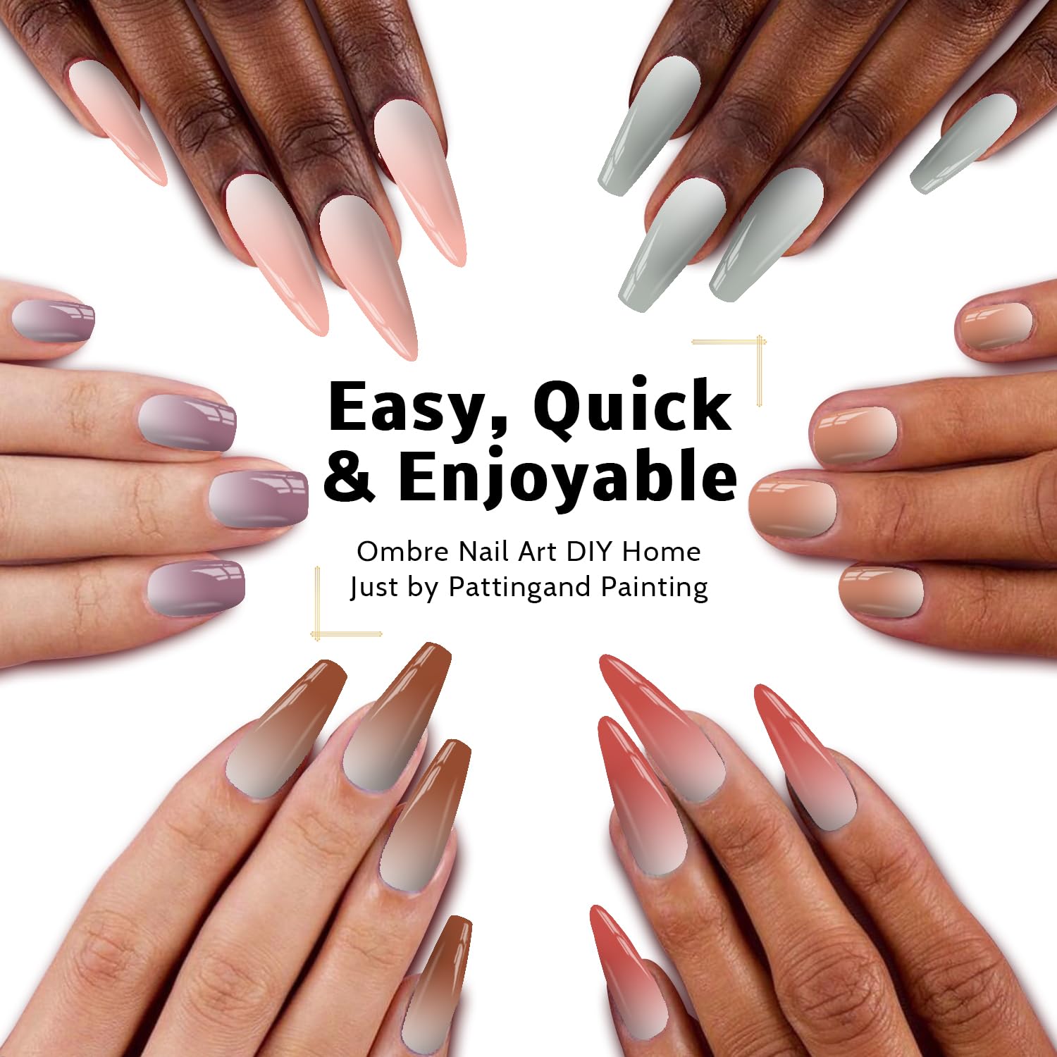 - 【HAVE FUN:】Karroy ombre nail gel will bring you great fun by self-coloring mixing, sponge-patting painting, brushes drawing & dotting, ect. It's easy, colorful, and wonderful! Package list: 9-Color Palette, 6PCS Nail Art Brushes, 1 Grabber, 100PCS Nail Sponges.
