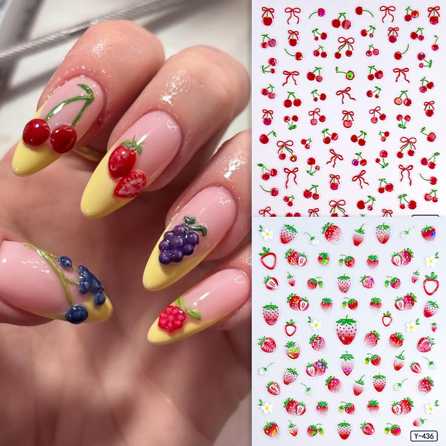 - Easy to Use: 3D self-adhesive fruits nail design is simple and quick to use,nail decals work great on bare nails, they will stay on for a long time and will not peel off your nails, enjoy the feeling of nail art