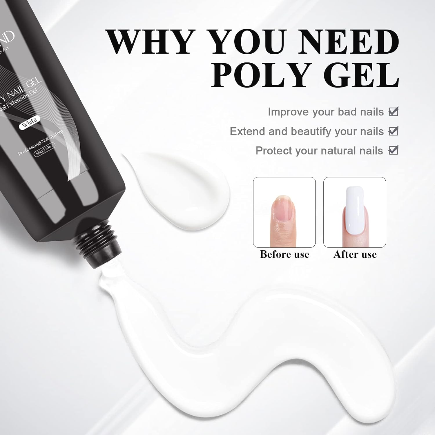 - š· SAVILAND WHITE POLY NAIL GEL-Saviland 100g/3.5oz white poly extension gel with popular classic color, can do nail extension, poly gel nails, nail enhancement, nail art, stick sequins or decorations, etc. 100g super large capacity, valuable, and long service life. It is very suitable for professional nail salons and nail lovers who often make extension. Can mix with other colorful gel to create various and attractive nail art.