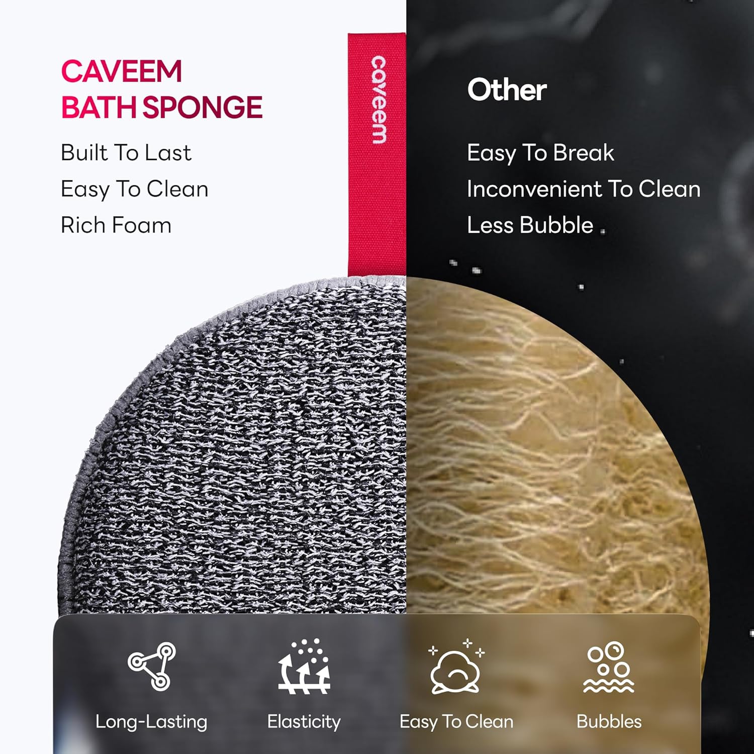 - [MONTHLY SKIN RENEWAL MADE EASY] Use this Caveem body scrubber for shower 2–3 times a week to help remove dead skin and support your skin’s renewal cycle. A practical body exfoliating sponge that refreshes without irritation.