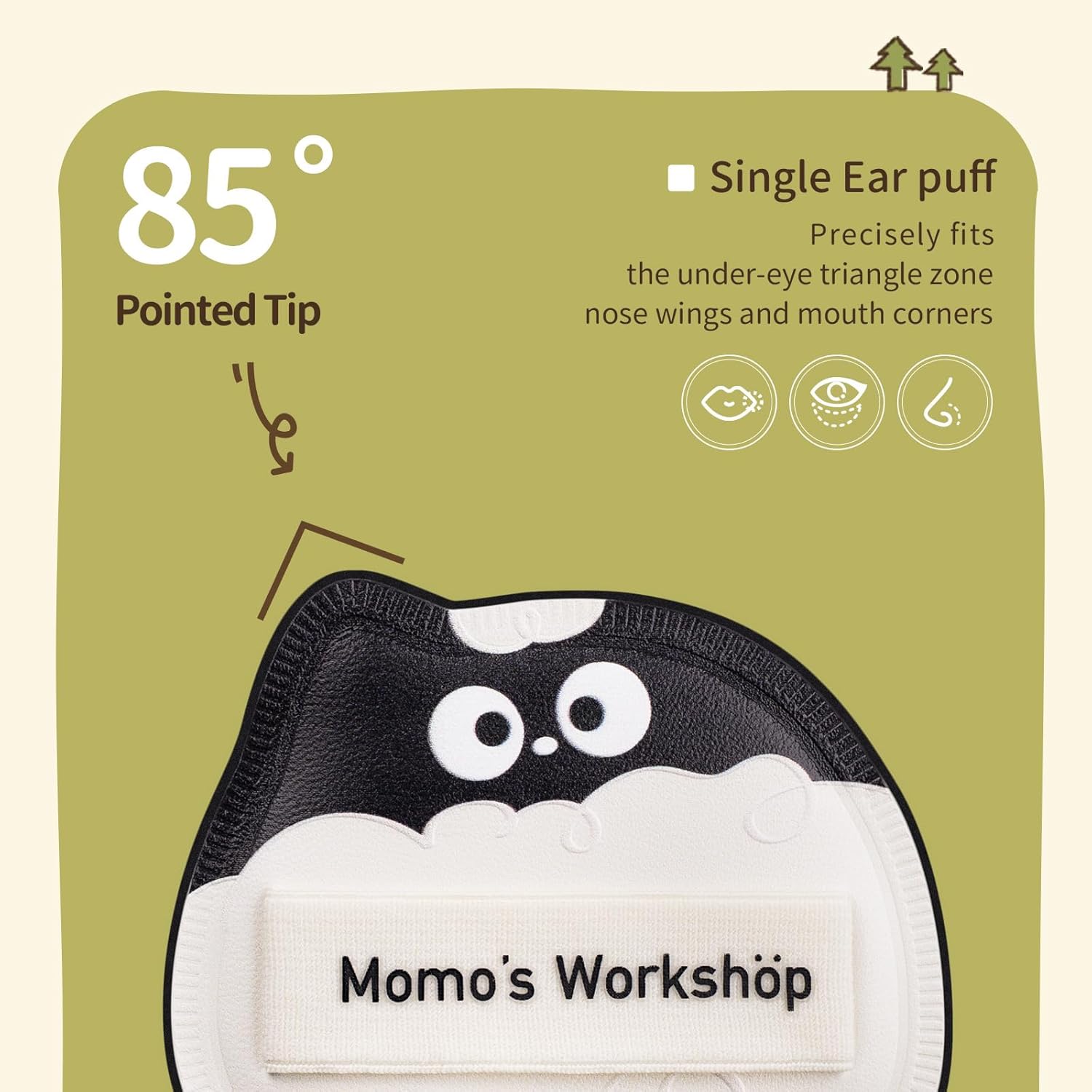 - ăErgonomic Single-Ear Shapeă This single-ear makeup puff has an angled ear tip that fits the nose and other parts; the flat design allows you to cover your cheeks/forehead in 2-3 strokes.