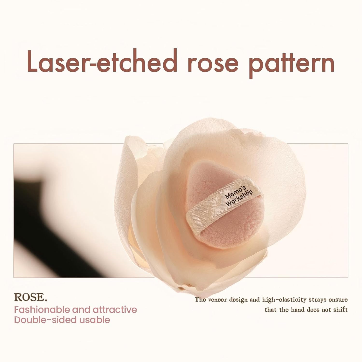 - ăLuxury Laser-Cut Velvet Surfaceă Pink velvet powder puff. Features 1mm ultra-soft velvet with rose laser etchingâbeautiful yet functional. Dual-sided use ensures even powder pickup and release.