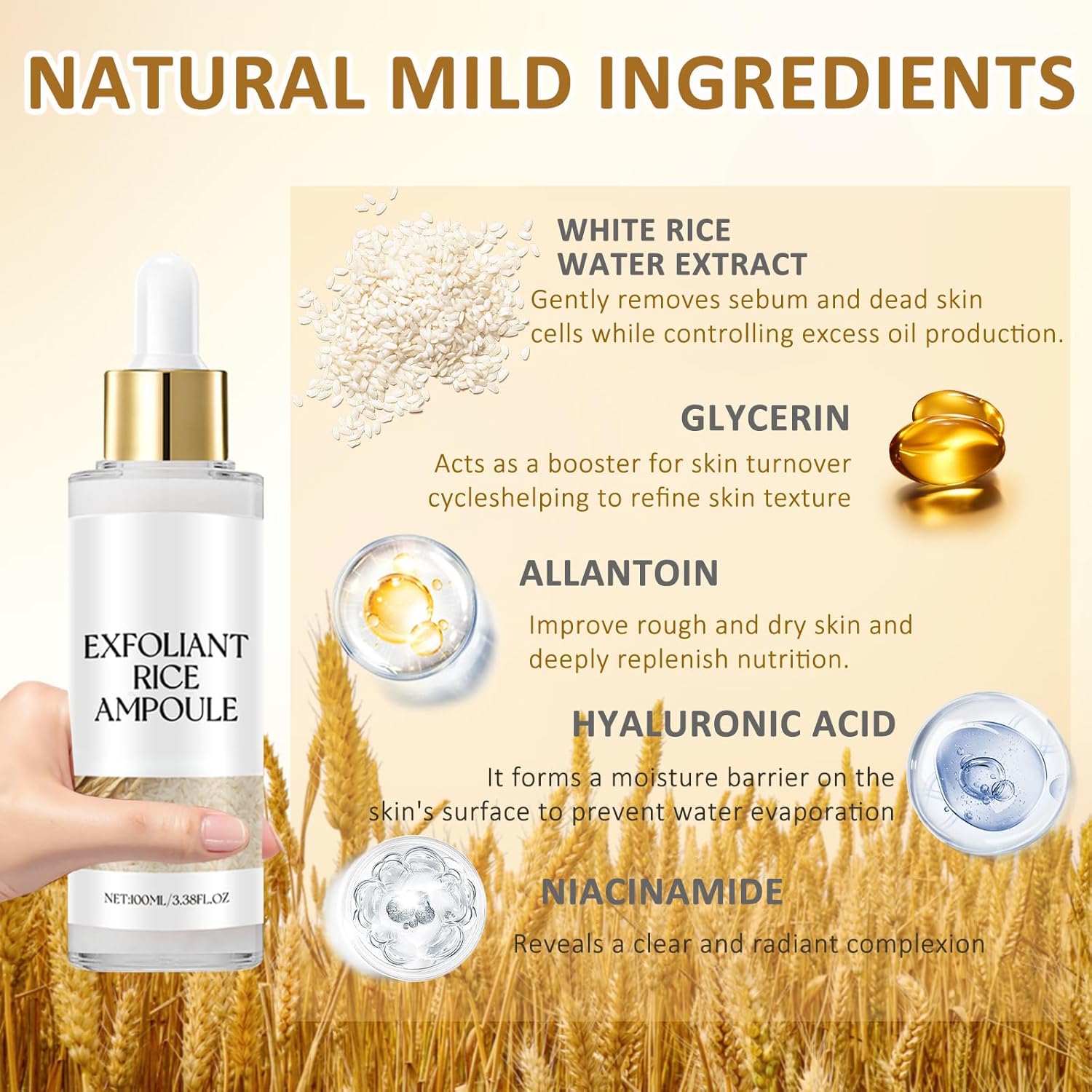 - 【FITS ANY ROUTINES】Use the Exfoliant Rice Ampoule morning or night—layer under serums or SPF for enhanced absorption.Compatible with retinol, vitamin C, and moisturizers for enhanced absorption. No residue, no downtime—perfect for busy
