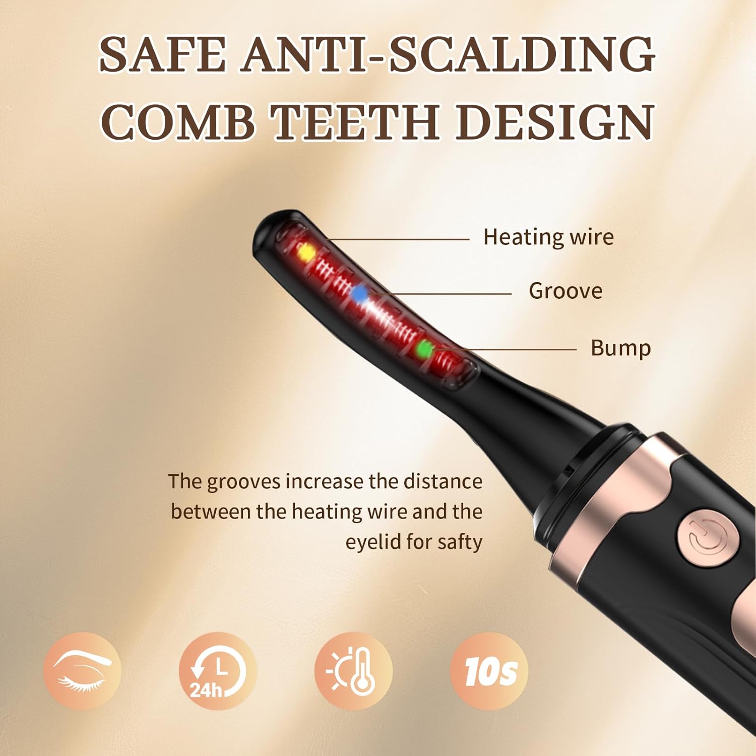 - 【3S FAST HEATING & LONG-LASTING CURL】The Heated Eyelash Curlers Can Fast Heat Up Within 10s And The Curved Curling Head Quickly Creates A Perfect, Natural Curl For Your Eyes. Lasts Up To 24 Hours. This Eyelash Curler Comes With A Professionally Designed Curved Brush Head. When Used With Mascara, It Helps You Curl Your Lashes Quickly And Easily For A Natural And Long-Lasting Eye Makeup Effect That Enhances Your Eyes' Depth And Natural Appeal.