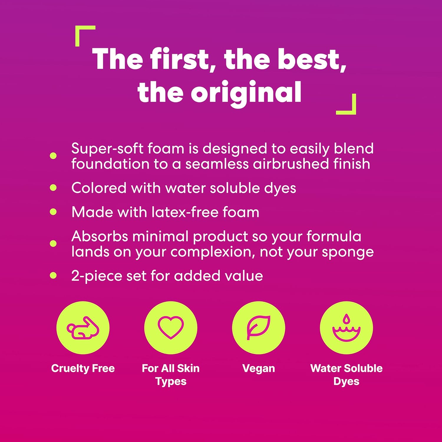 Beautyblender® | Original Pink Beauty Blender 2-Piece Bundle for Blending Foundations, Powders, and Creams, Super-Soft Foam for Streak-Free Application, Made in the USA, Reusable, Washable