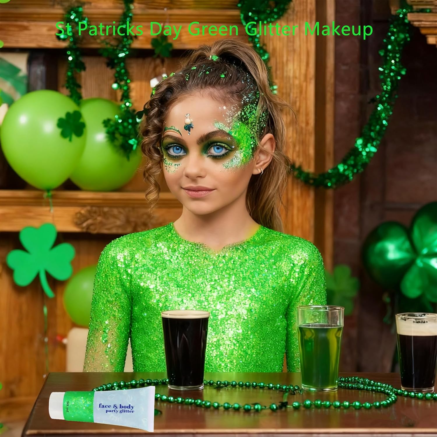 - Mardi Gras/St Patricks Day Accessories Glitter Makeup Wildly Use:This cosmetic chunky and fine glitters can be used to either complement your makeup look or just add some sparkle to other parts of your face and body.Great for face, body, eyeshadow, lips, cheeks, hair, nail art, and more.Great accessories for Singer Concerts,Music Festival,Rave,music festivals, weddings, parties, parades, football tailgates, and on stages around the world.