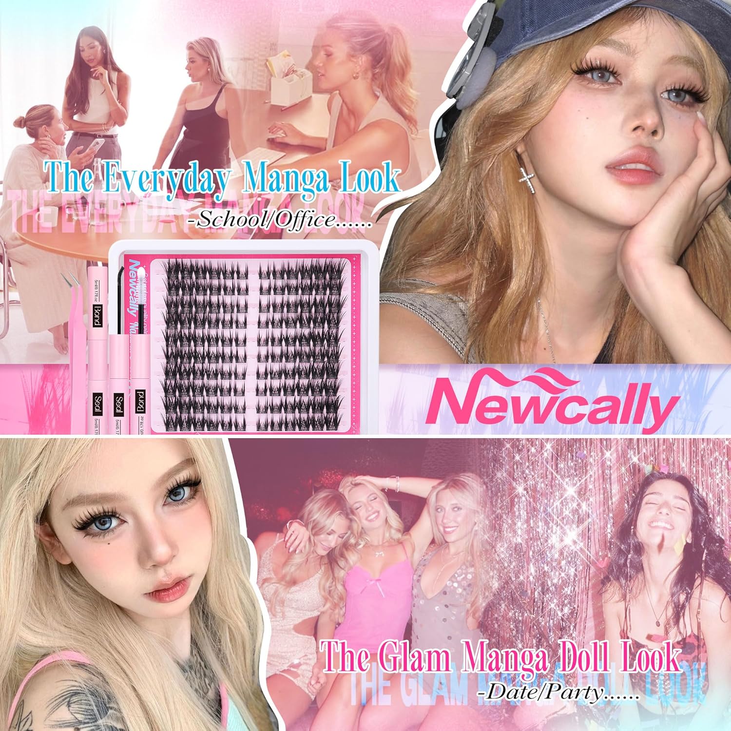 Cat Eye Lash Clusters Kit Wispy Manga Lash Extension Kit Natural Look Cluster Eyelash Extensions Fairy D-curly Cluster Lashes Kit 9-16MM DIY Eyelash Extension Kit by Newcally