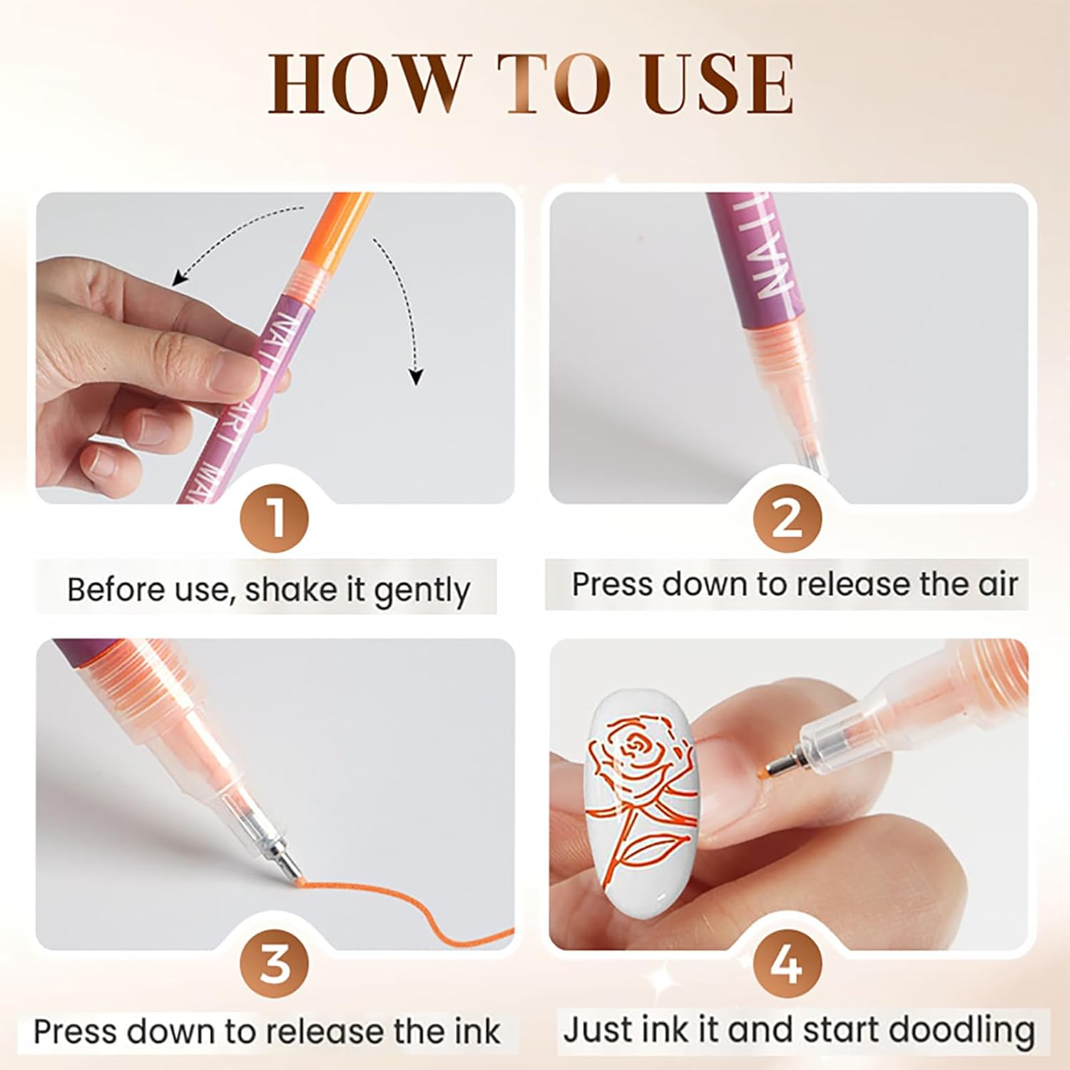 - Easy Artistic Application: Designed for smooth, effortless painting, these nail art pens allow you to create detailed designs with precision. The fine tips and even paint flow make it easy to use these nail doodle pens for intricate accents, ensuring your nails stand out whether at home or in a professional setting.